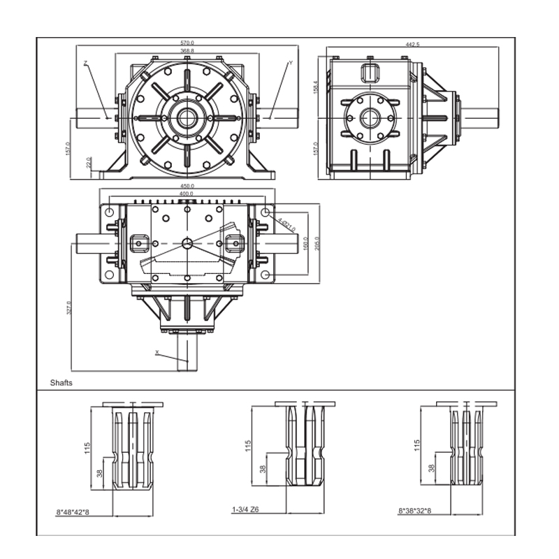 গিয়ারবক্সটি মেশিনের সামনের উল্লম্ব বাক্সের মাধ্যমে শক্তি বা ট্র্যাক্টরটি ঘূর্ণন গতি বাড়িয়ে তোলে এবং সংক্রমণ শ্যাফ্ট এবং বেল্টের মাধ্যমে ক্রাশিং কাটার শ্যাফটে শক্তি প্রেরণ করে। ডাবল-পার্শ্বযুক্ত আউটপুট মাধ্যমে, মেশিনের অপারেটিং প্রস্থ 3.5 মিটার থেকে 6.5 মিটার পৌঁছাতে পারে। একই সময়ে, এটি ফসলের উপর আরও ভাল ক্রাশিং প্রভাব অর্জনের জন্য গৌণ ক্রাশিং ফাংশনটিও উপলব্ধি করতে পারে। মেশিনটি ক্রপ খড়কে পিষে এবং তারপরে প্যাকগুলি পুনর্ব্যবহার করে এবং এটি পুনরায় ব্যবহার করে, বা সরাসরি এটি ফিড স্ট্যান্ডার্ডে ফিরিয়ে দেয়, বা সরাসরি জমির উর্বরতা বাড়ানোর জন্য পচতে মাঠে ফিরে আসে। এই ধরণের গিয়ারবক্স বিভিন্ন সরঞ্জামের ক্রাশিং ডিভাইসে যেমন ছোট বর্গাকার বালার, ধূলিকণাযুক্ত ছোট বর্গাকার বালার, রাউন্ড বেলার, খড় রিটার্ন মেশিন ইত্যাদি ব্যবহার করা হবে .